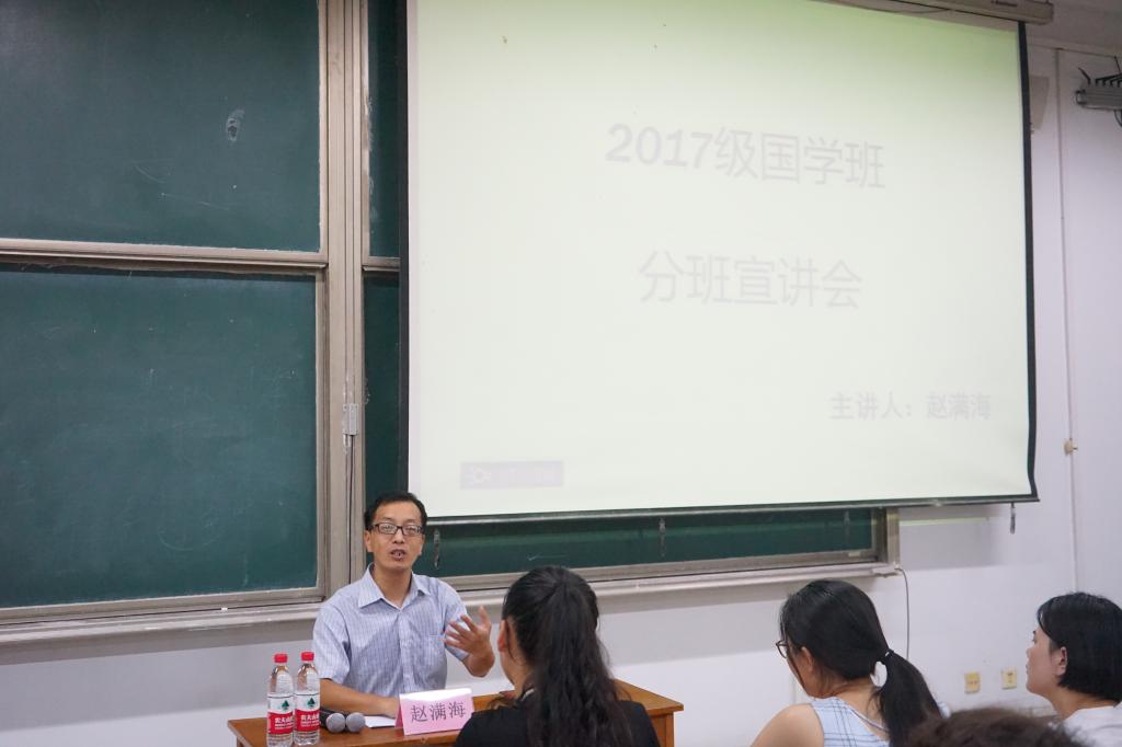 9月19日晚,工口动漫 国学教研室主任赵满海在综合楼203教室面向2017级历史班同学进行了2017级国学卓越班分班宣讲。