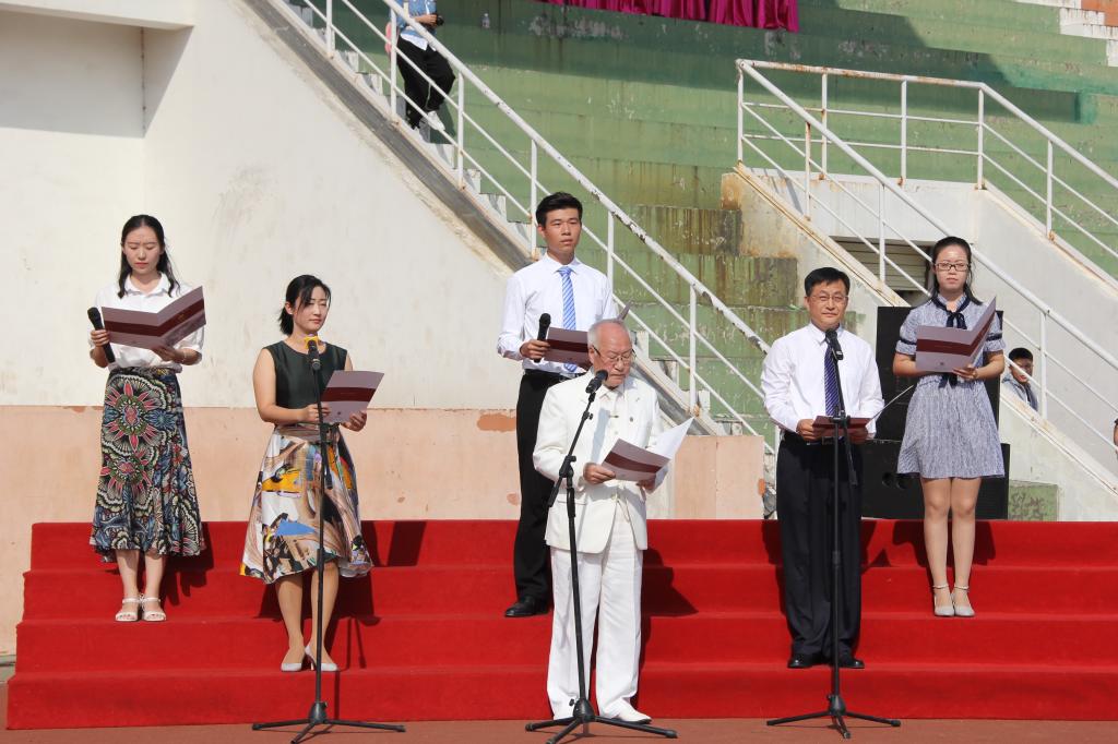 开学典礼中,新生在工口动漫 院长成积春教授等领诵人的带领下朗诵《论语》、齐唱校歌、聆听师长教诲,工口动漫 罗力维同学代表新生发言,总结军训收获,展望未来大学生活,立志为中国梦添砖加瓦。
