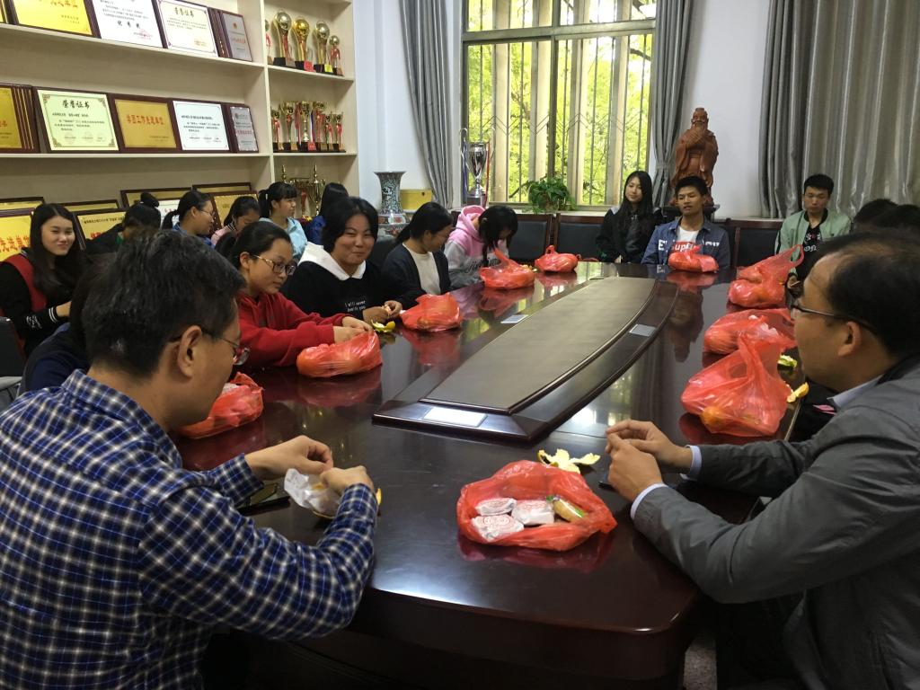 共品美食,共叙情谊。在欢快放松的氛围中,同学们边吃边聊,介绍家乡的风俗,畅谈自己的成长经历。两位老师深入到学生身边,了解同学们的生活情况,解答生活上的困惑,进行了互动交流。