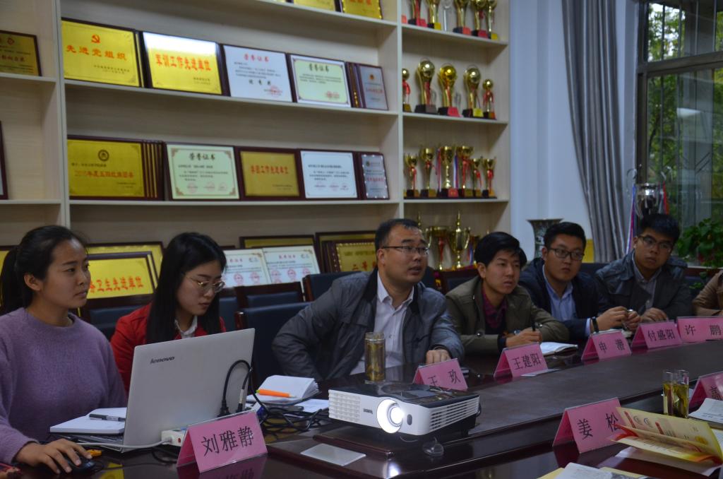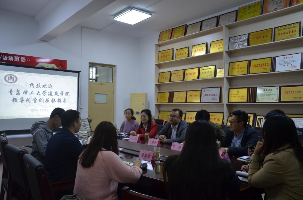 10月26日下午,青岛理工大学建筑学院团总支书记高江、团总支副书记姜松以及学生会主席梁嘉慧来工口动漫 进行工作交流。工口动漫 团委书记王建阳、团委副书记王玖、学生会主席付盛阳等主席团成员出席交流会。