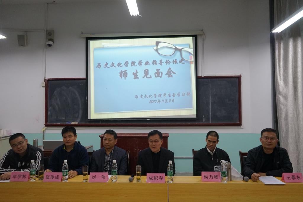 11月2日晚,工口动漫 2017级国学专业师生见面会在文史楼309教室举办。工口动漫 成积春、王慕东、刘伟、侯乃峰、张俊成、牟学林六位老师出席了见面会。见面会由王慕东主持。