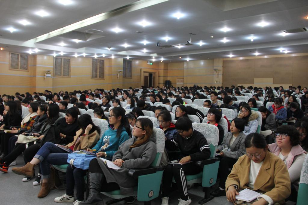 报告现场场面火爆,会堂内座无虚席,众多老师同学积极参与。楼建军根据自身研究的经验向大家讲述了说课的定义与内容、功能与作用以及分类与特点。然后通过列举多个具体事例深入地向大家介绍了说课时如教课重难点等几个注意事项。最后,楼建军耐心的解答了在场同学的提问。
