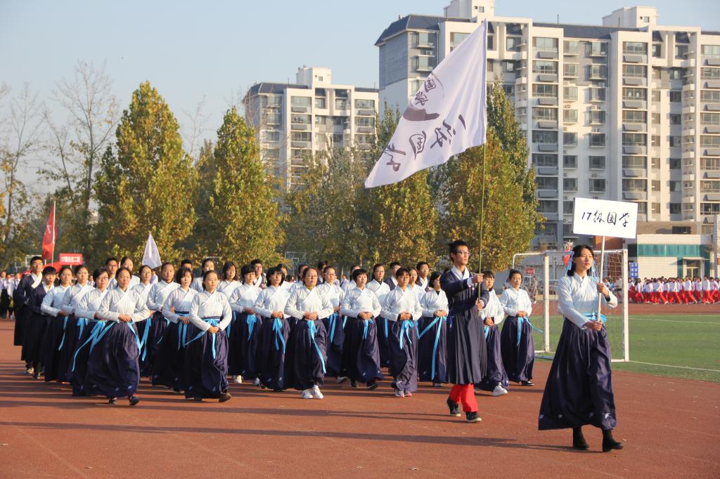 开幕式上,各班方队依次经过主席台前,随后王慕东致开幕词,向参加此次运动会的运动员、裁判员,以及同学们表示感谢,并预祝此次运动会圆满成功。2016级孙家兴和2015级石巩分别代表运动员和裁判员进行宣誓。最后,2017级新生带来的精彩的啦啦操表演,将现场气氛推向高潮。