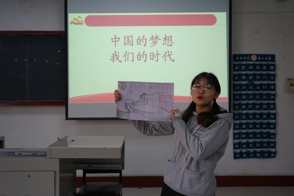 各团支部围绕“中国的梦想,我们的时代”这一主题,积极组织开展主题班会、举办课前演讲、学唱《习近平总书记寄语》、观看爱国主题题材电影,并通过歌词接龙、拍摄微电影等方式让每位同学参与到学习十九大中去。