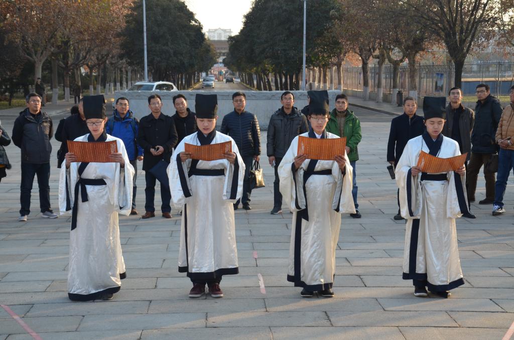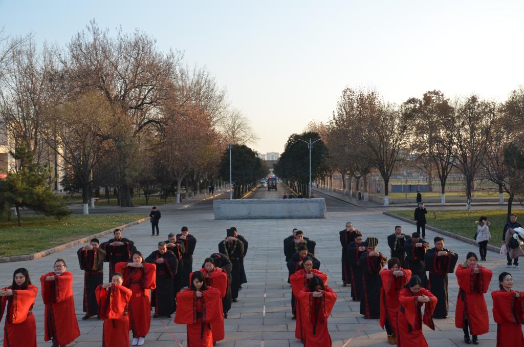 12月8日下午,工口动漫 传统礼仪队在孔子文化广场为连云港教育总工会主席考察团进行传统礼仪展演。