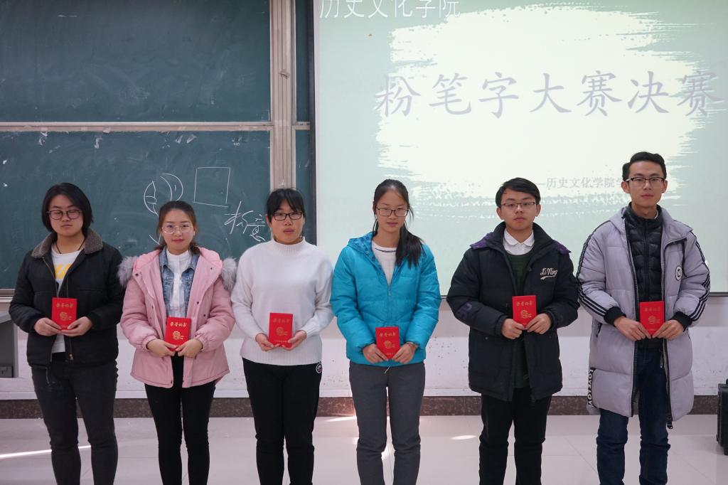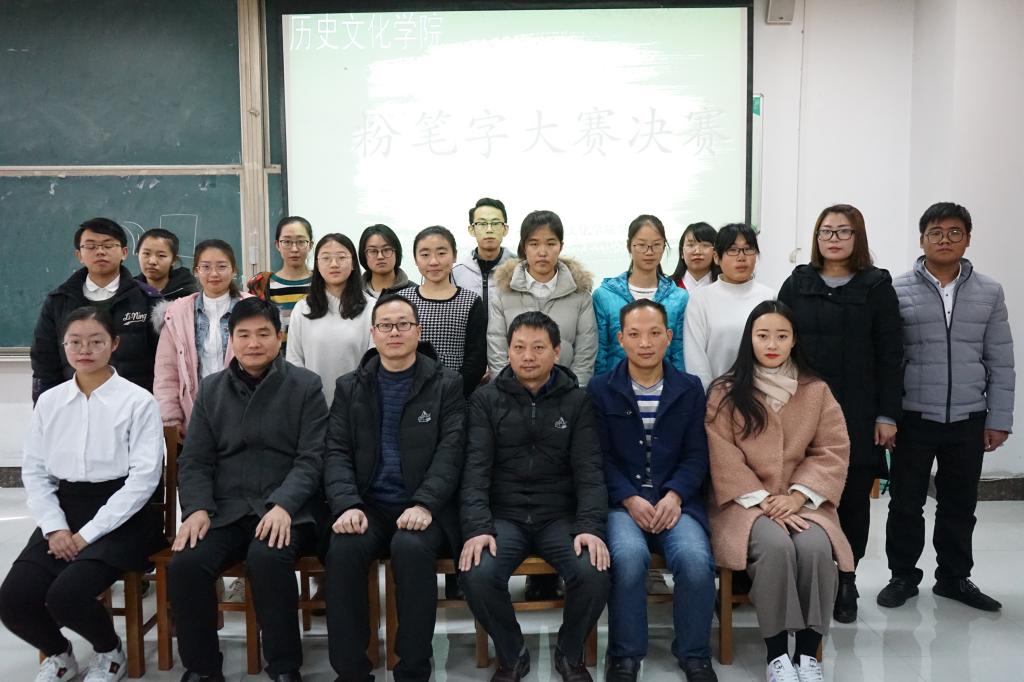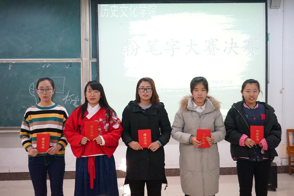 12月17日上午,由工口动漫 团委主办的“2017年粉笔字大赛”在综合楼105落下帷幕。韩锋、刘伟、张俊成、徐团辉四位老师出席了此次比赛并担任评委。