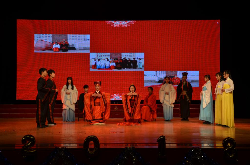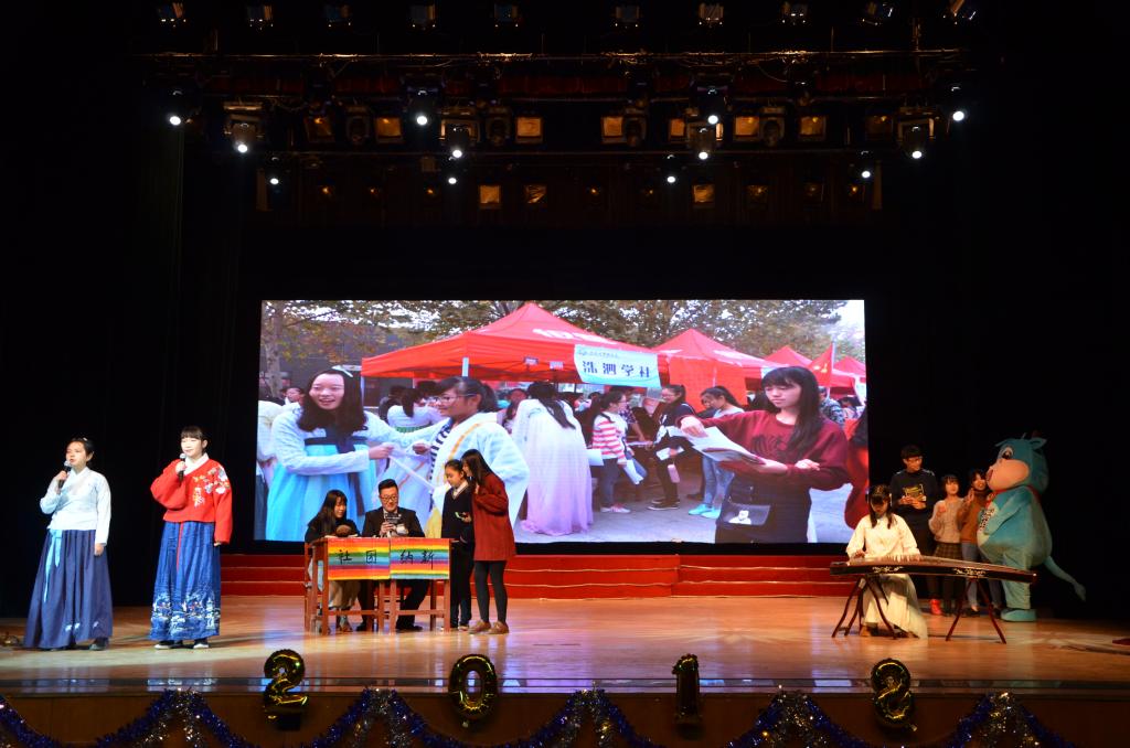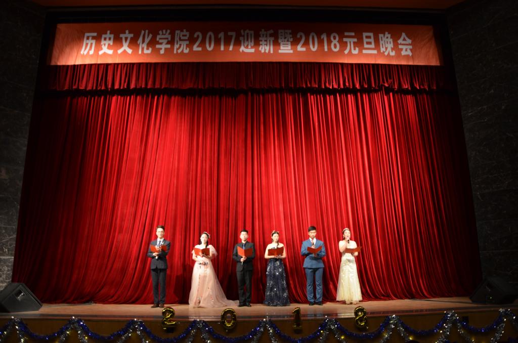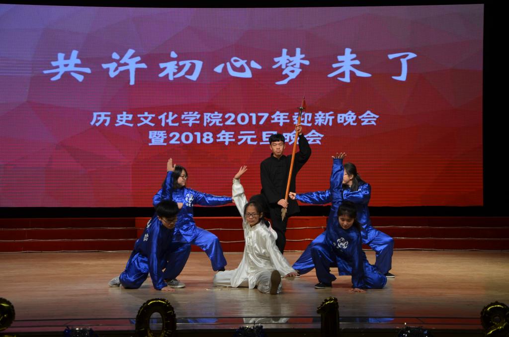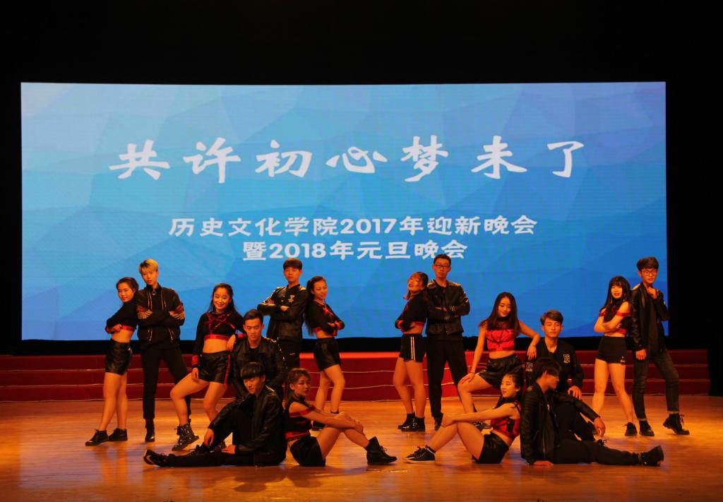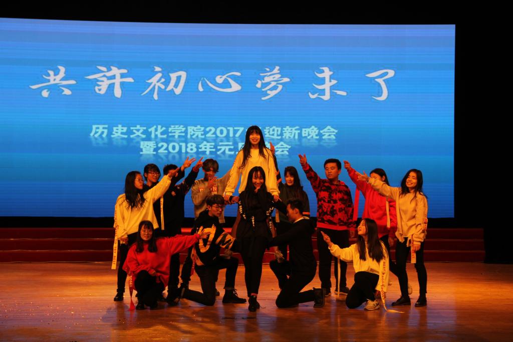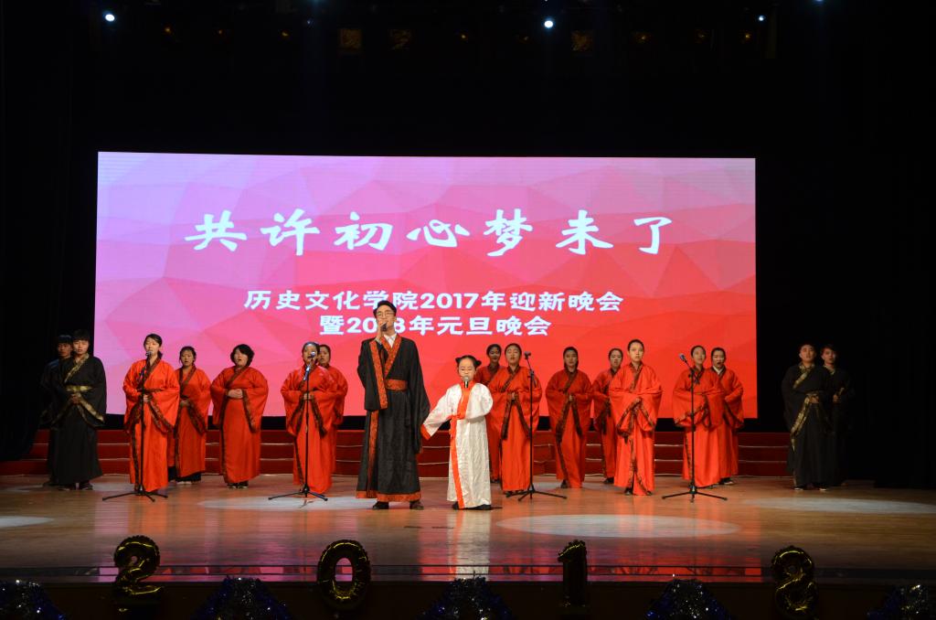 晚会共分为“寻梦史院”、“立梦初心”、“逐梦未来”三个篇章。晚会由一段精彩的视频开启,视频记录了史院师生的新年祝福和2017级新生开学以来的精彩瞬间。在一场活力四射的开场舞后,晚会正式拉开帷幕。一首《春风十里》将在场观众拉回到青春的美好回忆,史院教师带来的排舞《滑稽探戈戏》惊喜连连、引爆全场,《哦亲爱的》更是吸引了全场观众的眼球,轻松愉快的节奏给史院师生带来美好祝愿。武术和跆拳道表演的一招一式引得场下掌声连连,歌曲串烧《记忆中那些熟悉的旋律》勾起观众对曲园的独家记忆,引起全场温情合唱。舞台剧《曲园修炼手册》将新生生活的一点一滴记录在册,让观众在笑与泪中回味青涩懵懂的时光。小品《太想爱你》向观众演绎了浪漫的大学爱情故事,《孔子说》童言诵读带领观众重温孔子的微言大义,汉服走秀《韶华好时光》娉娉婷婷、温文尔雅,古典舞《清平调》气质高雅、舞姿飘逸,给在场观众带来一场视觉盛宴;气势磅礴的器乐合奏《权御天下》让观众感受到传统音乐的大气磅礴、气势非凡。传统礼仪《婚礼》还原古代婚礼,让观众体会中国传统礼仪所承载的厚重的文明。相声《我要幸福》以其幽默诙谐的方式逗乐全场,爵士舞串烧《歌舞青春》更是以炫酷有力的舞步嗨翻全场,随后由2017级班长团支书带来的舞蹈《管家大狂欢》将晚会推向高潮。小品《开会请关机》、小合唱《重返十七岁》、歌曲串烧《留下我的曲园印记2017》等节目也是极具特色,精彩纷呈。在中场的互动环节中,全场观众参与抽奖,并以送惊喜的形式表达自己的感恩之情,气氛轻松愉快。晚会在学生会主席团成员带来的歌曲《青春纪念册》中圆满落幕。