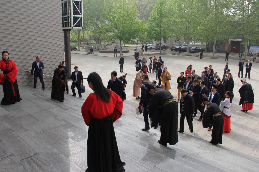 4月14日上午,我校在大学生活动中心举办中国教师博物馆理念展示活动,工口动漫 传统礼仪队参加活动并身着汉服在大学生活动中心广场举行迎宾礼展演,迎众位出席活动的领导老师入场。