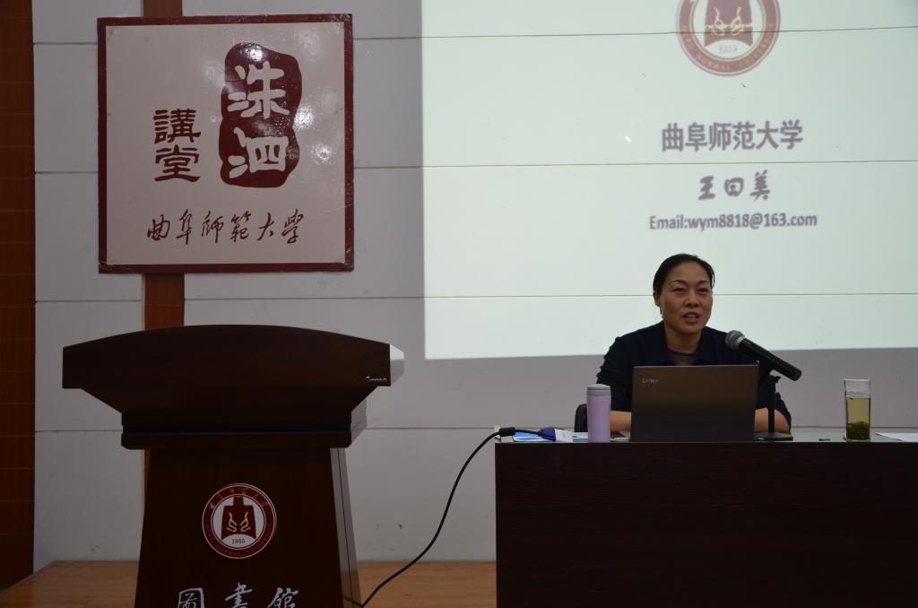 4月27日晚,2018年第4期洙泗讲堂报告在图书馆报告厅举行。工口动漫 王曰美教授作了题为“畅游书海,为国弘文”的报告。报告由图书馆馆长王东波老师主持。