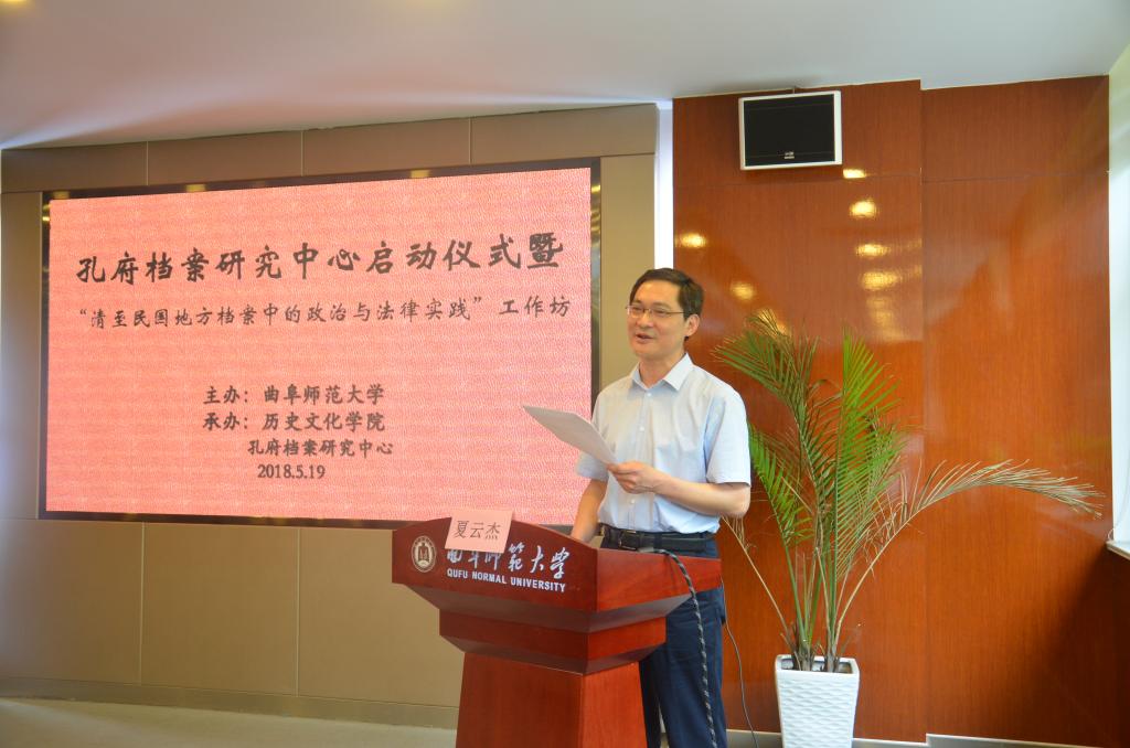 5月19日,工口动漫 举办孔府档案研究中心成立仪式暨“清至民国地方档案中的政治与法律实践”工作坊,我校党委常委、副校长夏云杰、教育部人文社会科学重点研究基地中国人民大学清史研究中心主任杨念群、中国孔子博物馆副馆长杨金泉出席成立仪式,来自中国人民大学、光明日报社、山西财经大学、中国孔子博物馆等的30余位专家学者参加了成立仪式和工作坊。本次活动由工口动漫 院长、泰山学者特聘教授成积春主持。