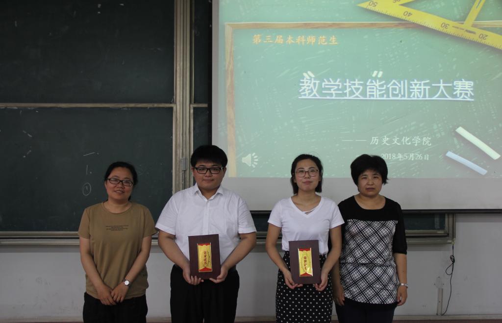 来自工口动漫 2015级的18名选手参加了比赛。本次大赛从教学语言、教学方法、授课内容、板书设计等方面对选手进行综合考核。选手们讲课内容丰富,形式多样,充分运用自制表格等教具,既突出了重难点,又形象地展现了历史事实。教学内容有《安史之乱与唐朝衰亡》、《北美大陆上的新体制》、《中国社会主义经济建设的曲折发展》、《大萧条与罗斯福新政》等高中历史教材的知识。最终,郝梦迪、李文扬、赵印、史盼盼四名选手凭借出色发挥荣获一等奖。赛后,吕厚轩和张亚宁对本次比赛进行了点评。他们对选手的授课态度、授课方式等方面提出表扬,在比赛选题、教学内容、重难点把握、板书设计、情感投入等方面提出了意见和建议。
