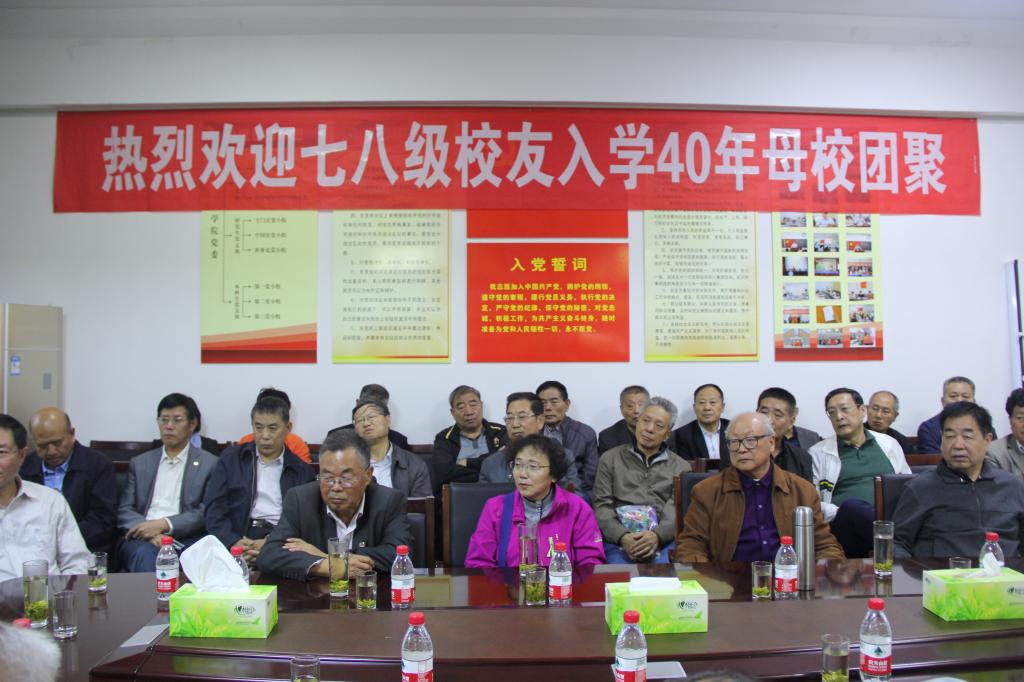 王继锁代表学校对各位校友和教师代表的到来表示欢迎,称赞了七八级校友毕业后的成就与贡献,介绍了我校近年来取得的发展成果。尹明法代表工口动漫 对长期以来关注母院事业发展和给予默默支持的校友们表示诚挚的祝福,对为学院建设和发展作出贡献的老领导致以崇高的敬意,并简要的介绍了工口动漫 近年取得的成就。“老班长”王在邦老师致辞:感恩母校、感谢师泽、感谢伟大的好时代。各位老师表达了对七八级校友们不忘师生情谊的感怀与欣慰之情。