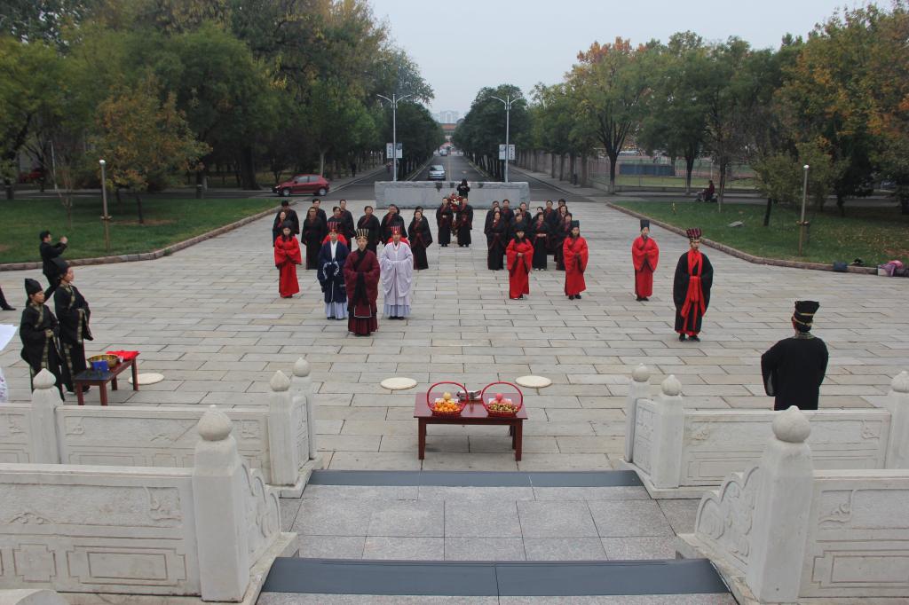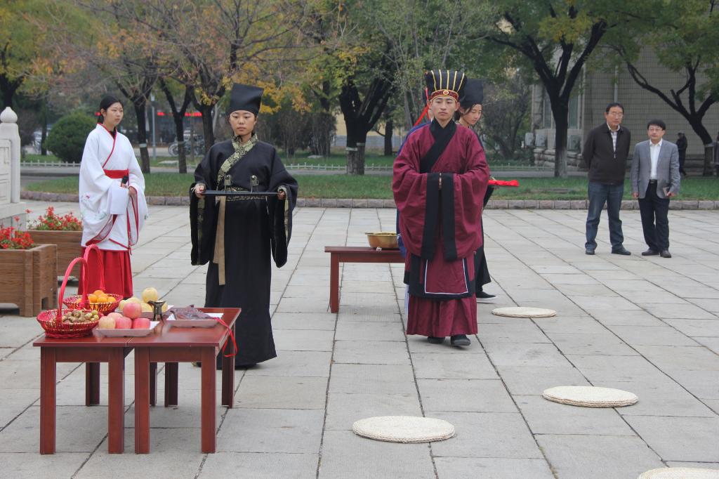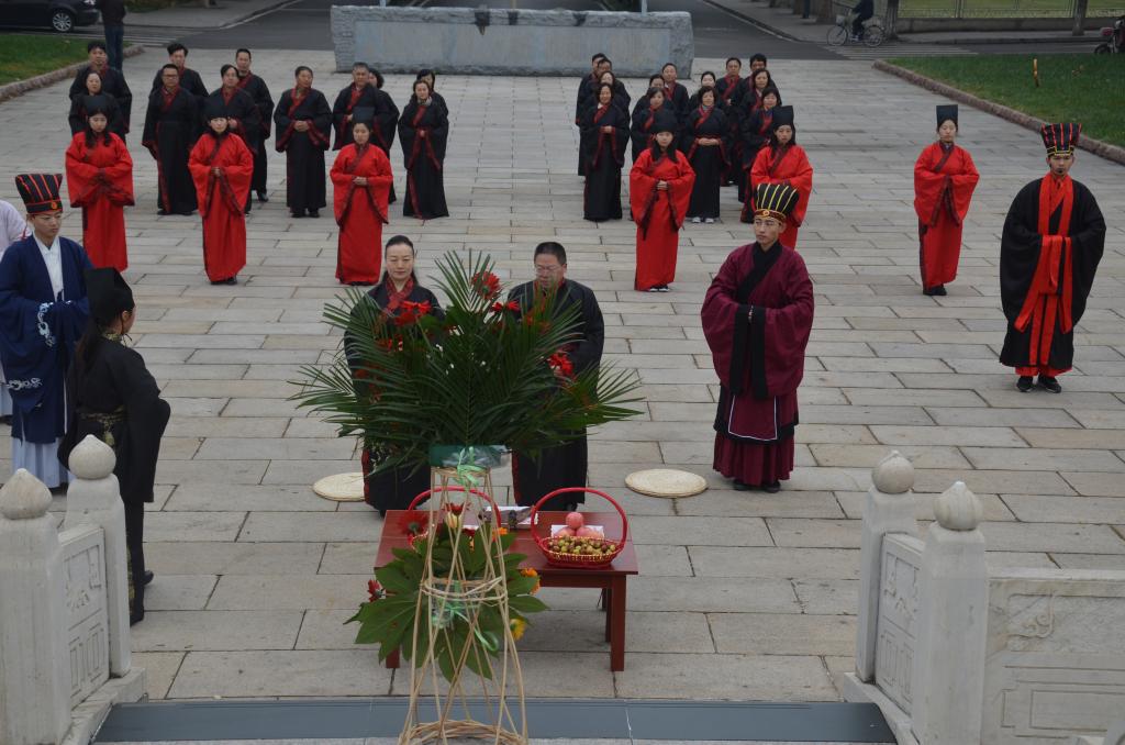 11月7日上午,工口动漫 传统礼仪研修中心在孔子文化广场举行了“祭至圣先师礼”展演。江苏省无锡市的优秀老师干部现场观礼。