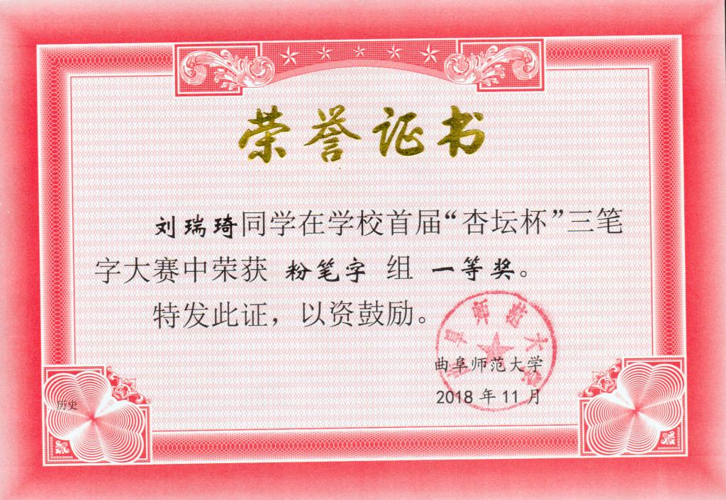 刘瑞琦 粉笔字组一等奖
