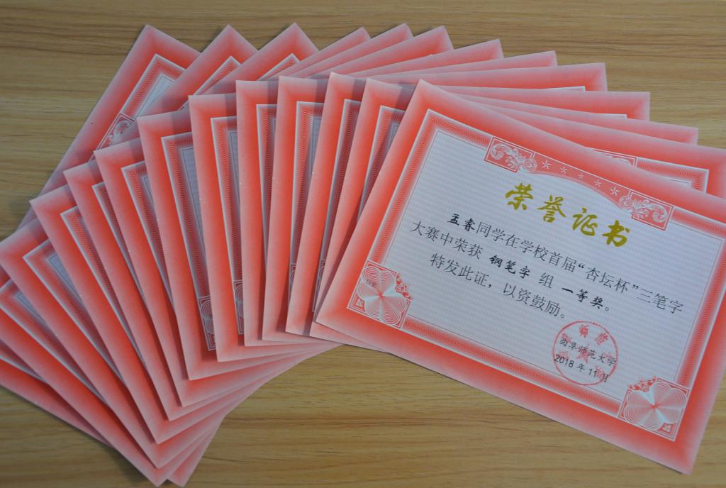11月16日,我校首届“杏坛杯”三笔字大赛成功落下帷幕。工口动漫 师生积极参加比赛,经过激烈角逐,最终孟睿等三名同学荣获一等奖,李彦铭等四名同学获二等奖,于佳琪等六名同学获三等奖。王慕东、王昌沛、李建、韩锋、孟凡港及牟学林等六位老师荣获“优秀指导教师”称号。