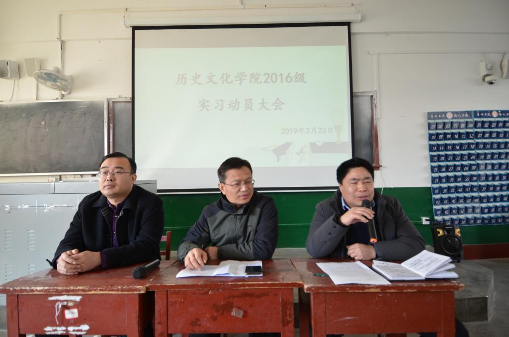 2月23日上午,工口动漫 2016级历史学实习动员大会在文史楼411教室召开,工口动漫 党委副书记王慕东、副院长王京传、团委书记王建阳及2016级历史学专业同学参加会议。会议由王建阳主持。