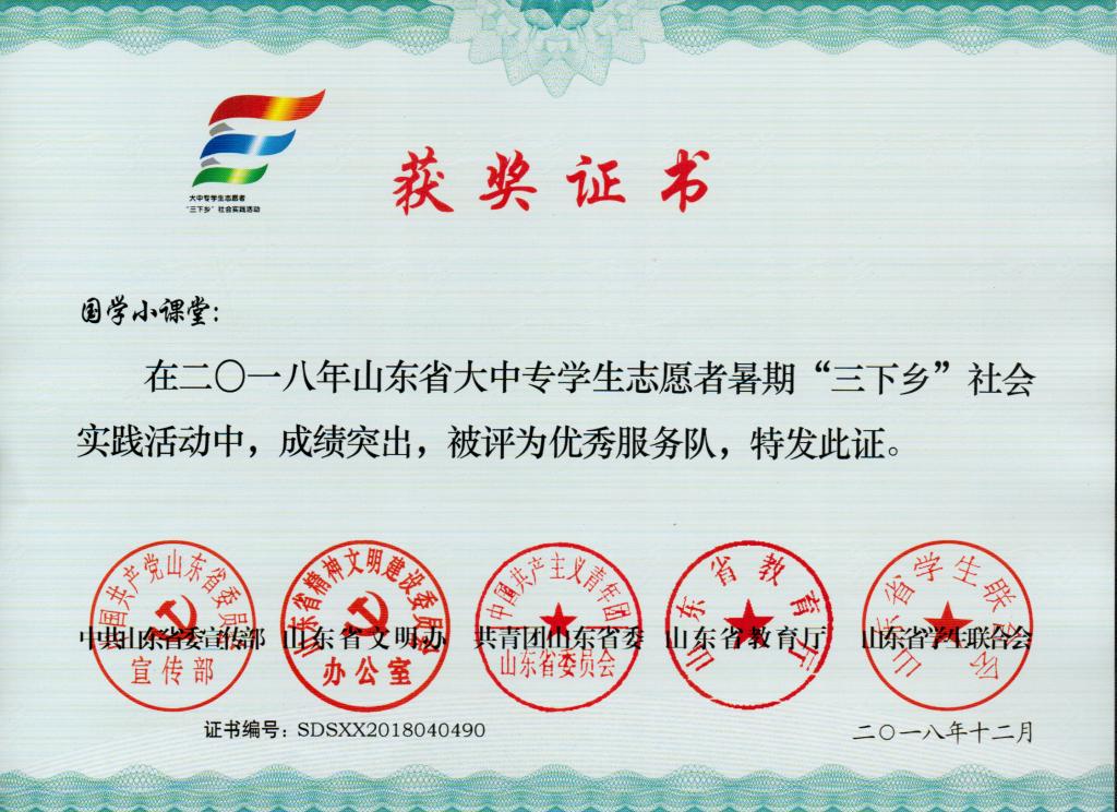 近日,2018年山东省大中专学生志愿者暑期文化科技卫生“三下乡”社会实践活动评选落下帷幕。经过基层申报、专家评审等层层筛选,工口动漫 实践团队代表获得佳绩。其中在山东省大学生“三下乡·千村行动”共青团助力扶贫专项行动中,工口动漫 “青春在这里闪光”团队、初芽支教支医社会实践团队、小太阳支教团、蒲公英支教团等四支队伍荣获“优秀服务团队”称号,吕厚轩、王建阳老师被评为“优秀指导教师”,杨龙秋等8位同学荣获“优秀学生”称号;在山东省大中专学生志愿者暑期“三下乡”社会实践活动中,工口动漫 “国学小课堂”和“儒家文化齐鲁行”社会实践团队荣获“优秀服务队”称号,温超等7位同学荣获“优秀学生”称号。