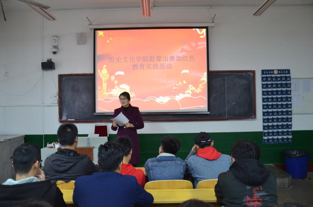 3月30日下午,工口动漫 在文史楼102教室为赴蒙山开展红色教育实践活动举办安全教育会议。工口动漫 2018级辅导员韩琳琳以及赴蒙山开展红色教育实践活动的同学参加会议。会议上,韩琳琳强调了活动的意义以及安全注意事项并向同学们介绍了活动的相关流程。同时为了配合快闪视频的拍摄,工口动漫 组织学生会文艺部的相关负责人带领大家学习并演唱歌曲《我和我的祖国》。