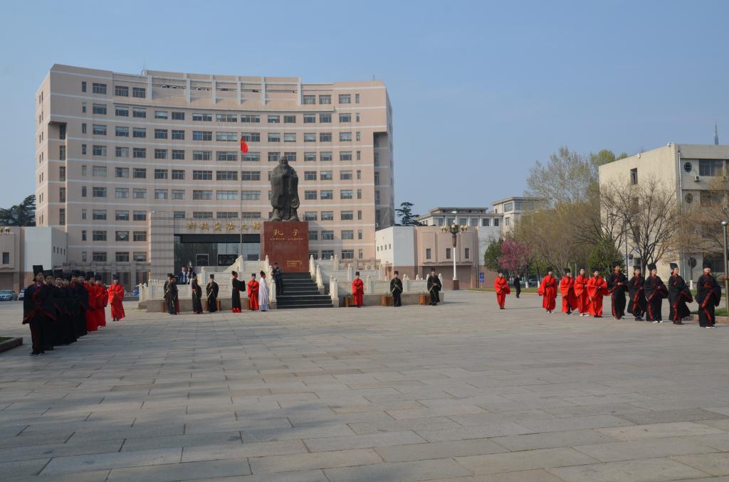 4月4日下午,孔子第79代嫡长孙、至圣孔子基金会会长孔垂长先生,来我校参观中国教师博物馆。学校党委书记戚万学,山东省台湾事务办公室交流处处长孔民,曲阜市政协主席孔令玉,我校副校长冯冲、辛杰等共同出席参观活动。工口动漫 传统礼仪队在孔子像前为孔垂长举行迎宾礼。