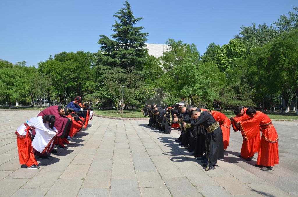 5月22日中午,工口动漫 “拜谒仪”在孔子文化广场举行。江苏省教育厅的老师们出席并参加了此次活动。