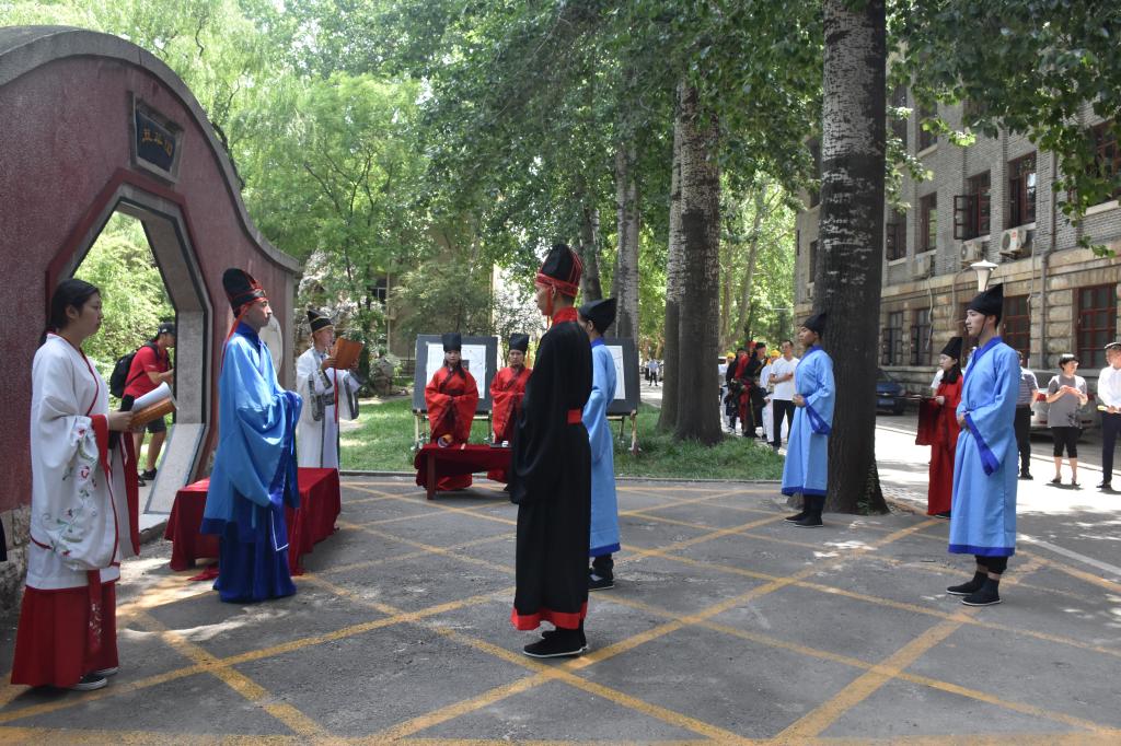 6月4日上午,工口动漫 传统礼仪研修中心在萃华园为来我校学习访问的金砖五国留学生展演束脩礼。