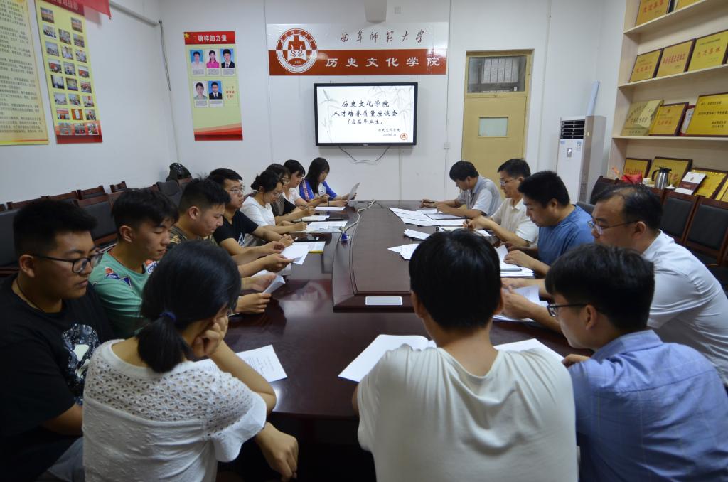 6月21日晚,工口动漫 人才培养质量座谈会在文史楼二楼会议室成功举办。工口动漫 院长成积春、副院长王京传、团委书记王建阳、历史系主任刘伟出席会议,工口动漫 2019届毕业班学生代表参加会议。