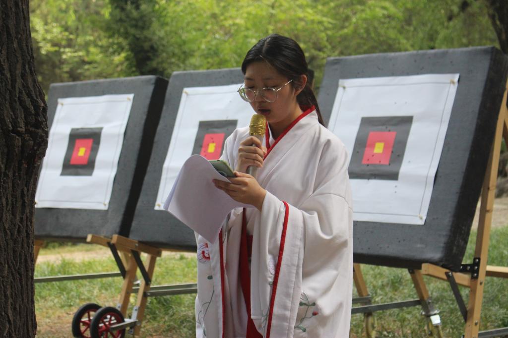 随着弦和之乐缓缓奏起,学生代表身着汉服在萃华园展演“束脩礼”,行正衣冠、诵读《束脩告文》、献戒等礼仪。整场仪式庄严、古朴,全体师生心怀敬意,在独特的儒家氛围中,以彬彬古礼谢师恩、表敬意,展现出尊师重道、明礼求学的深厚文化底蕴。