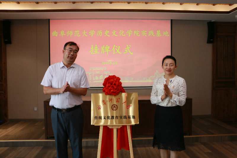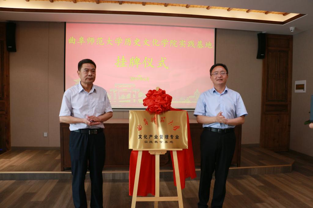 6月21日上午,工口动漫 在复圣文化旅游区举行文化产业管理专业实践教学基地及传统文化教学实践基地揭牌仪式。学院党委书记尹明法、副院长吕厚轩、教工党支部书记及副教授张俊成、团委书记王建阳、续大鹏老师;宁阳县委常委及组织部长周鹏飞、宁阳团县委书记李琳、县委宣传部副部长孙雁龙、县文旅局党组成员及副局长李全华和县统筹公司及山东复圣文化产业股份有限公司相关同志出席仪式。