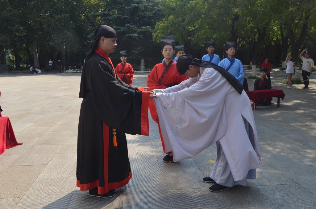 9月1日上午,我校在大学生活动中心举行“感谢恩师·你我同行”大型公益活动启动仪式。在活动期间,工口动漫 在综合楼前为本次参加活动的领导和老师们举行束脩礼展演。