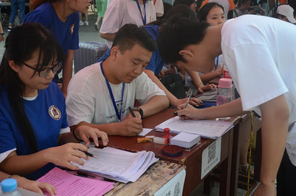为保证迎新工作的有序开展,工口动漫 团委、学生会全体成员以及志愿服务者积极工作,通过设立新生咨询处、接待处、爱心助力岗,帮助新生搬运行李等各种方式,为新生报到提供全程服务。