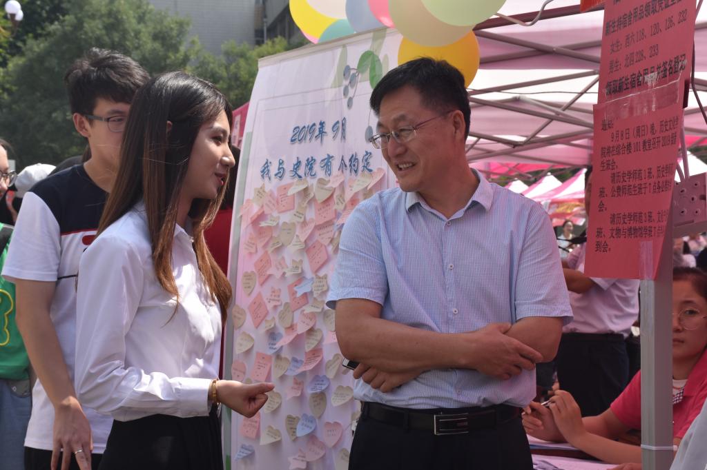 7日上午,工口动漫 院长成积春、党委副书记王建阳、2018级辅导员韩琳琳、2017级辅导员刘贤贤、2019级辅导员刘润欣前往新生接待处,亲切看望了前来报到的新生,并对学院迎新工作进行了指导。