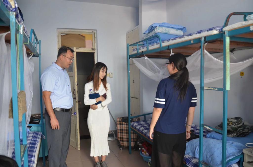 老师们亲自走进新生寝室,与新生进行亲切交流,询问他们到校后各方面的情况。同时,王建阳表示新生们以后无论是在学习或生活中有任何问题,都可以随时与老师沟通,并勉励新生,希望新生以最大的热情投入到接下来的学习与生活中去。新生们也对老师的到来表示欢迎,积极与老师们进行互动交流。宿舍楼道里传出一阵阵笑声,师生间的友好关系得以更进一步。