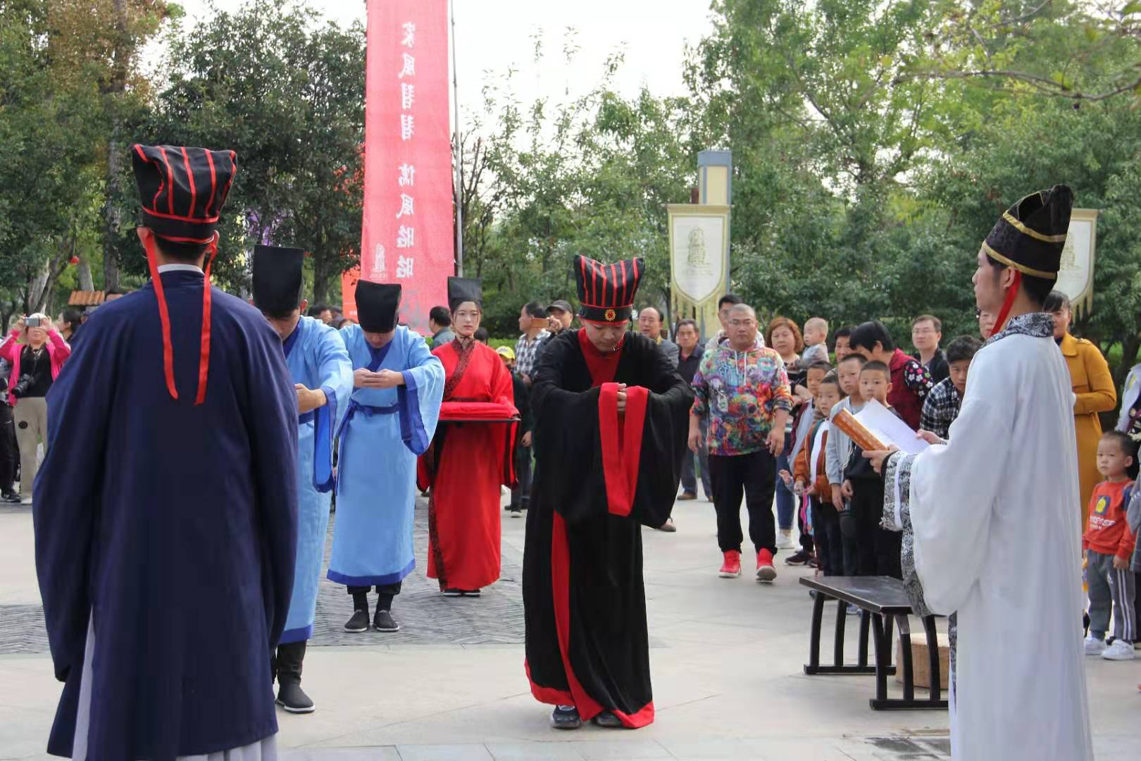 随着弦和之乐缓缓奏起,学生代表身穿汉服、头顶儒冠向来往游客进行射礼和束脩礼展演。两场仪式庄严、古朴,赢得在场观众的一致好评,弘扬了儒家传统文化,体现出对老师、对知识的推崇,展现出深厚的文化底蕴。