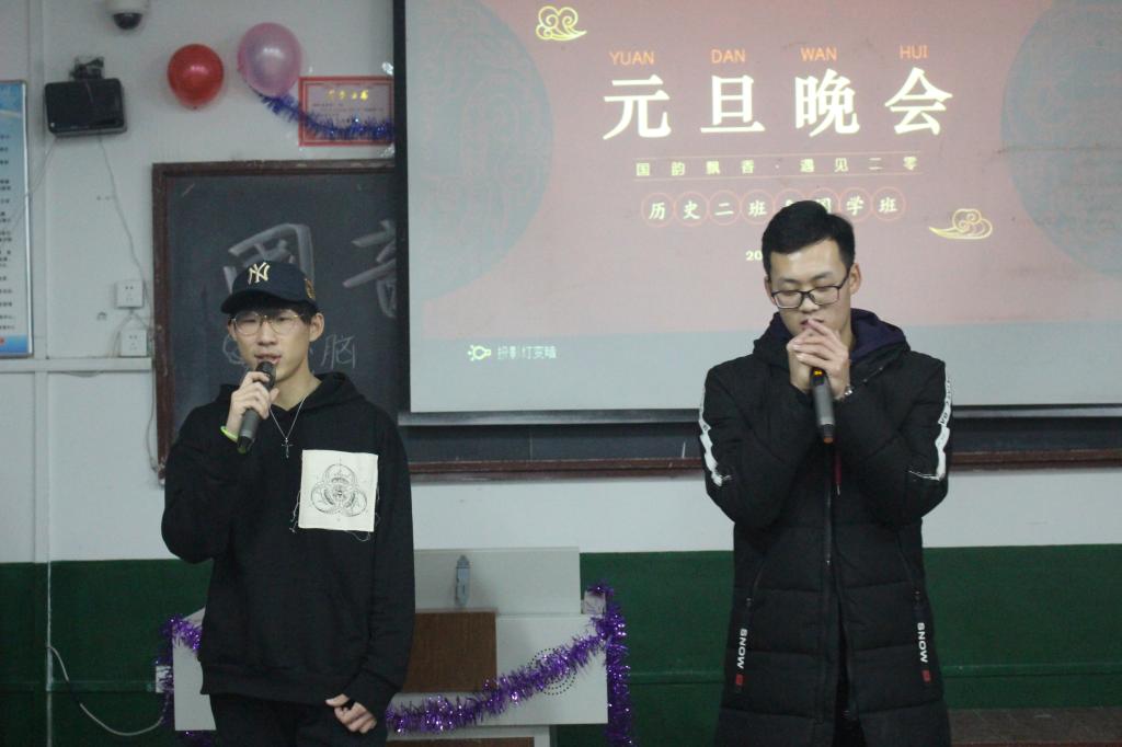 晚会开始前,同学们到一楼大厅写下自己对新的一年的寄语。晚会开始后,领导老师们来到各个班级为同学们送去节日的祝福。王建阳回首2019年与同学们的点点滴滴,对2019级同学加入史院大家庭表示热烈欢迎,并对同学们提出殷切期盼。领导老师们认真观看同学们的表演,并积极参与到节目表演中,刘润欣与2019级班团共跳《小鹿time》舞蹈,巩宝平携其爱子献唱一首《龙的传人》,任军锋的《一生有你》《丁香花》则将晚会气氛推向高潮,最后,工口动漫 学生会主席团共同为同学们献唱《再见》,表达了对2019级同学们的深厚感情。晚会还特别设置游戏环节,同学们积极参与其中,充分体现出工口动漫 学子昂扬向上的青春风采。