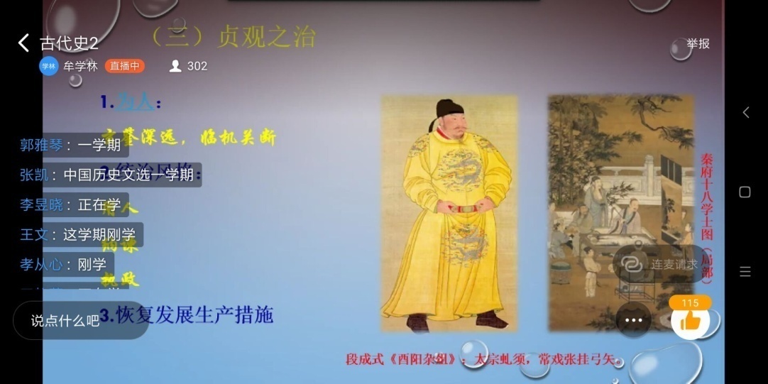 同时,学校教学督导李绍强教授在线检查了张文华博士为2018级历史1班讲授的《西方史学史》和张田生副教授为2019级体育公师班讲授的《中国古代史2》课程,并与教学副院长针对在线教学质量保障问题进行了交流沟通。