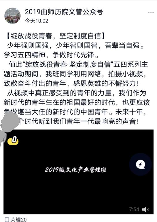 视频拍摄活动的开展,促进了五四精神的传承,加深了同学们对五四精神的理解,激发了同学们将青年担当与五四精神结合起来的热情。