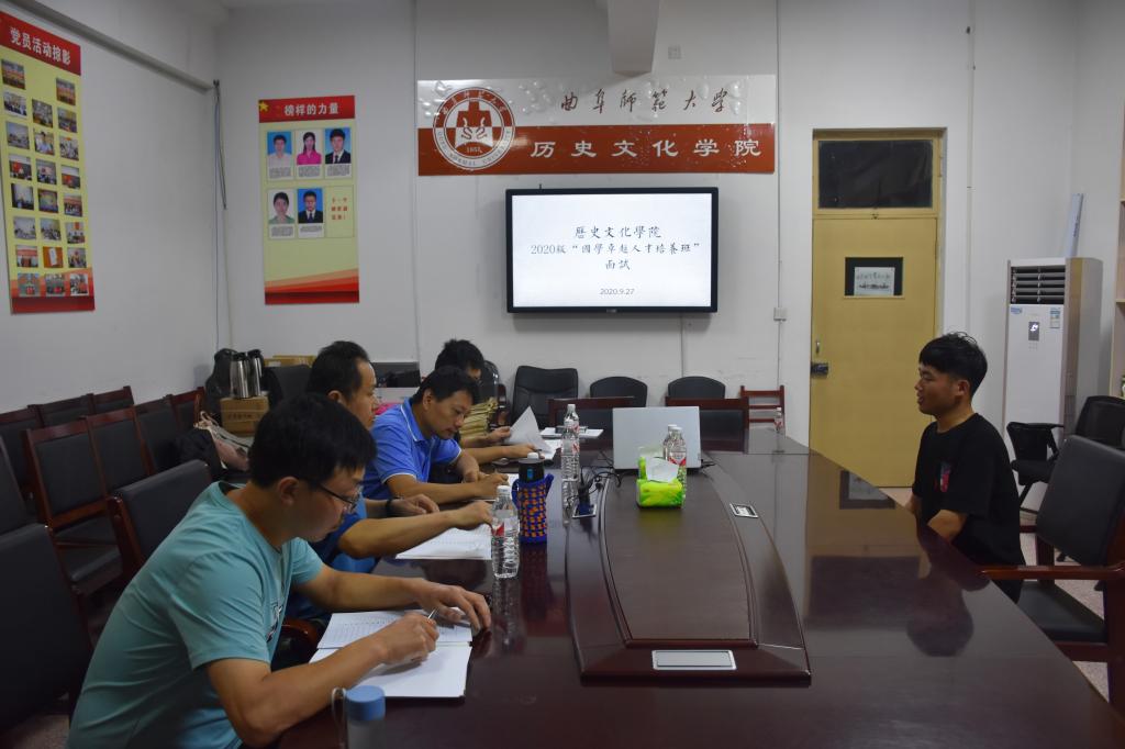 9月27日晚,工口动漫 2020级“卓越国学人才”班选拔测试在文史楼302和二楼会议室举行。工口动漫 刘伟、韩锋、王建阳等老师担任此次选拔评委,来自2020级的历史学新生参加选拔测试。