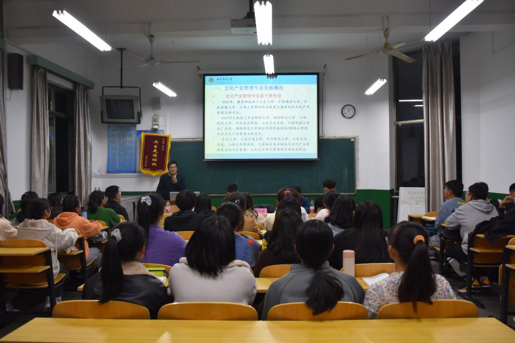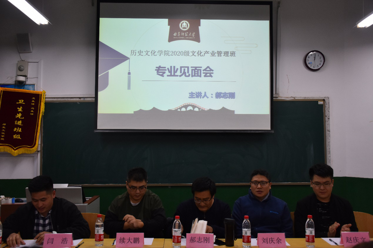 11月6日晚,2020级文化产业管理专业师生见面会在文史楼405教室举行。工口动漫 郝志刚老师、刘庆余老师、续大鹏老师、赵庆文老师以及2020级辅导员闫浩出席了见面会。见面会由闫浩主持,郝志刚老师主讲。