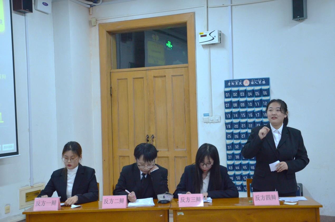 本次比赛采用自由组队方式和晋级赛制,经过激烈角逐,国学超凶队、我们说的都队、说啥啥都队、还是我们说的队成功登上了决赛的舞台。决赛由冠军争夺赛、季军争夺赛和惊喜表演赛组成,冠军争夺赛由“国学超凶队”对阵“我们说的都队”,季军争夺赛由“说啥啥都队”对阵“还是我们说的队”。在争夺赛中,对阵双方展开激烈辩论,双方选手引经据典、针锋相对,但不失风度。开篇立论环节中,双方一辩清晰地阐述了本队的观点。攻辩环节双方围绕各自观点展开激烈辩论,赢得现场观众的阵阵掌声。自由辩论环节更是展现了辩手们超强的逻辑思维和临场反应能力。总结陈词环节中,辩手们的论述条理清晰、逻辑明确,为辩论画上了圆满的句号。