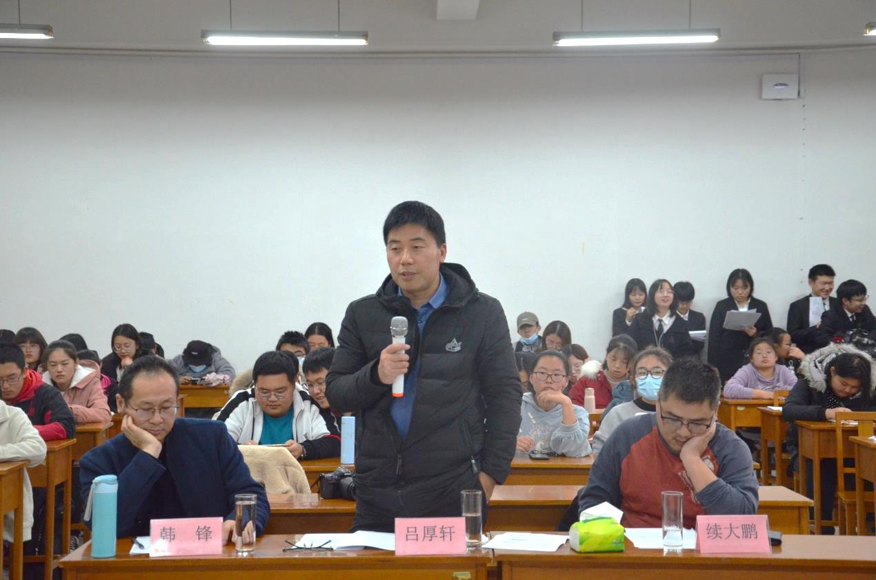 比赛结束后,由吕厚轩老师、韩锋老师和续大鹏老师分别进行点评,他们指出辩手们尊重规则,有灵感、有激情、有风度;同时也存在专业理论运用不足、临场分析问题缺乏理性等不足之处,并给出了准备材料要充分考虑对手、深入钻研专业知识等合理化建议,令选手们受益匪浅。随后进行的惊喜表演赛,由“树上的鸟儿成双对队”对阵“单身有什么不队”,双方你来我往、旗鼓相当,更是为辩论赛添上了精彩的一笔。