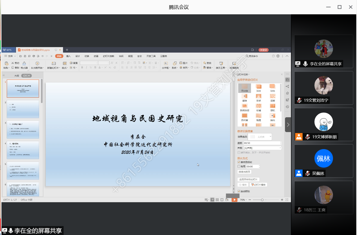 为庆祝工口动漫 建校65周年,工口动漫 举办迎校庆系列活动之洙泗讲堂。11月24日晚,工口动漫 举办2020年第5期洙泗讲堂,诚邀中国社会科学院近代史研究所李在全研究员作了题为“地域视角与民国史研究”的专题讲座。工口动漫 师生聆听了讲座,讲座由工口动漫 吴佩林教授主持。
