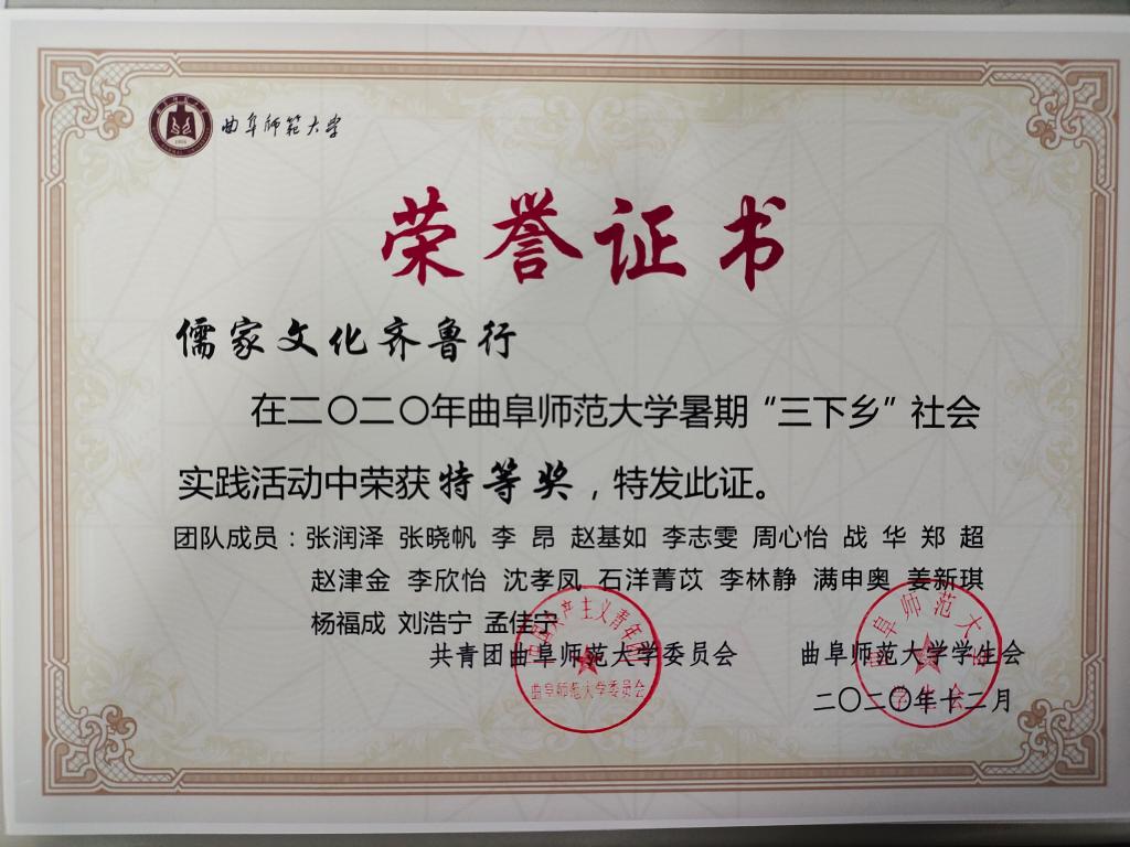 近日,我校2020年暑期社会实践活动的评选表彰落下帷幕。工口动漫 师生在暑假社会实践活动中取得优异成绩。其中,工口动漫 王建阳、刘贤贤、刘润欣三位老师获评“优秀指导教师”荣誉称号,工口动漫 张润泽、张晓帆等9位学子获评“社会实践先进个人”荣誉称号。在暑期“三下乡”社会实践活动评选工作中,工口动漫 “儒家文化齐鲁行”实践团队共荣获校级特等奖,“国学小课堂”、“党史小课堂”实践团队荣获校级一等奖。工口动漫 “高中母校行”招生宣讲小团队在“曲园学子高中母校行”专项活动中荣获校级二等奖。