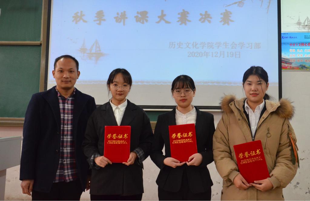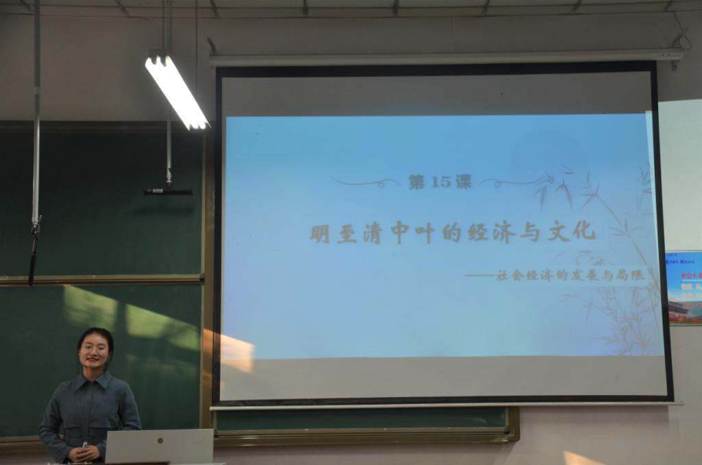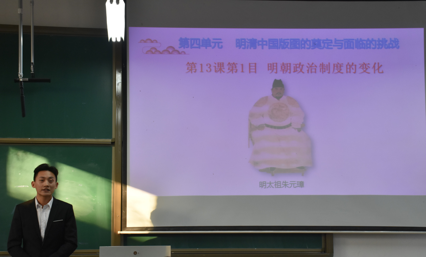 来自工口动漫 研究生、本科生的21名选手参加了比赛。比赛分为说课和讲课两大部分,从教学内容、教学语言、教学方法、板书设计等方面对参赛选手进行综合考察。选手们以初高中历史知识为着眼点,通过师生互动、小组讨论以及视频演绎等方式活跃课堂气氛,丰富课堂内容,让学生在活动过程中探究新知识,达到寓教于乐的教学目的。最后,刘伟老师和韩锋老师对比赛以及选手的表现进行点评,对同学们的优异表现表示肯定,并从授课时间安排、课程内容详略安排、课堂用语以及课件设计等方面给出建议,希望同学们能够改正缺点发扬优点取得更大的进步。