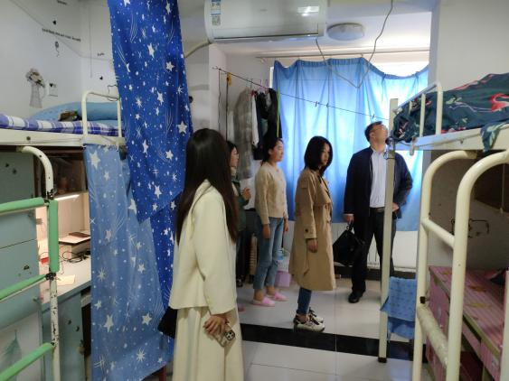 4月20日下午,工口动漫 党委副书记王建阳、辅导员刘贤贤、刘润欣、蔺琦琦、闫浩走进工口动漫 毕业班宿舍,查看毕业班宿舍卫生打扫和安全情况。老师们不时向同学们普及关于安全用电、防盗防火防诈骗等宿舍安全常识,并针对走访过程中发现的问题及时给予指正,努力帮助学生们营造健康绿色的宿舍生活环境。