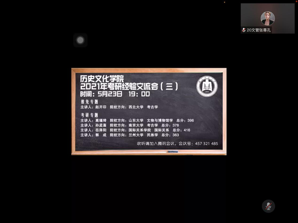 为加强工口动漫 学风建设,帮助工口动漫 学子了解当下推免、考研形势,掌握相关考验技巧,提高工口动漫 学子考研信心,5月23日晚,工口动漫 于腾讯会议线上举办第三期考研经验交流会。会议邀请2017级赵开印、高瑾琪、孙梦菡、岳泽阳、郭成五名同学参加并担任主讲人。
