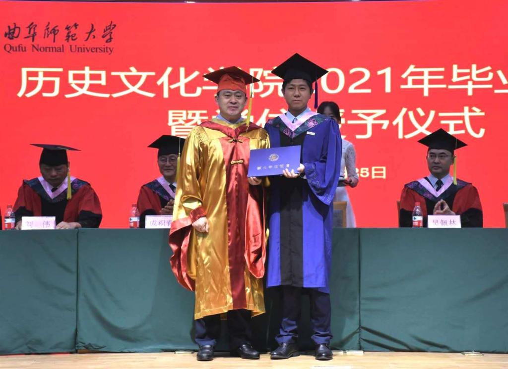 研究生毕业生代表、2018级中国史专业硕士研究生申潜同学表表达了对校园的眷恋、对师长的感激、对母校的祝愿。他说,作为一名即将赴基层工作的选调生,一定会铭记母校校训,传承先辈精神,牢记史院人的责任,肩负时代使命,让青春在为祖国、为民族、为人民、为人类的不懈奋斗中绽放出绚丽之花。