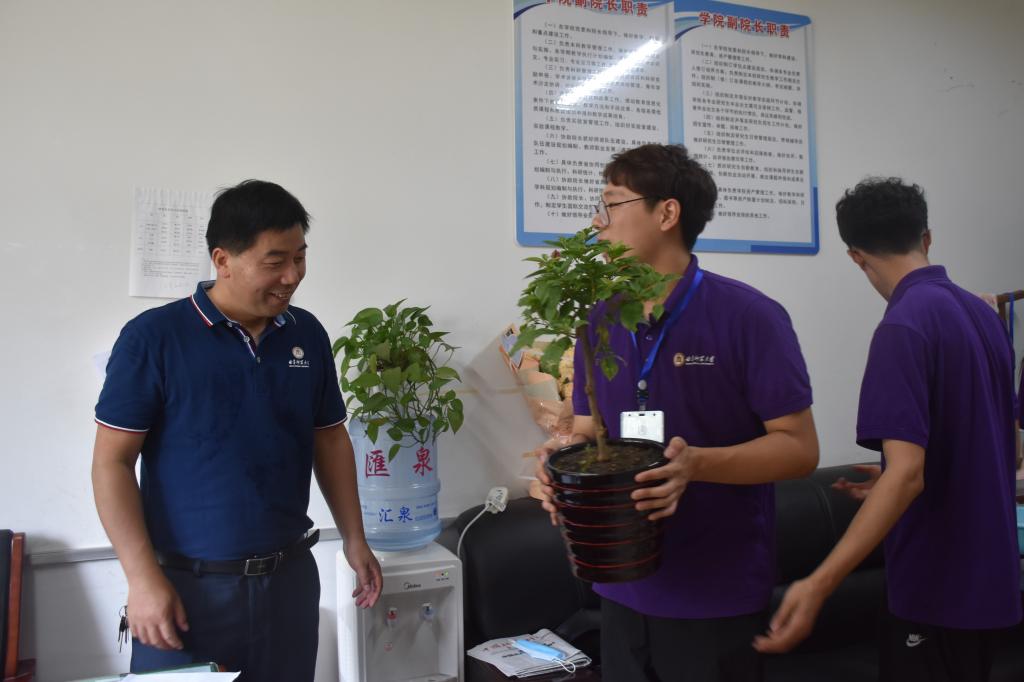 三尺讲台育桃李,一支粉笔普丹心。工口动漫 团委学生会代表许芮豪、石洋菁苡、曹文迪、宗盛楠、肖桂旭等走进各学院老师办公室和教研室,为老师们送上鲜花和小礼物,献上最真挚的节日祝福。在欢声笑语中,老师们流露了欣慰的笑容,真切地感受到了工口动漫 学子浓浓的情意。