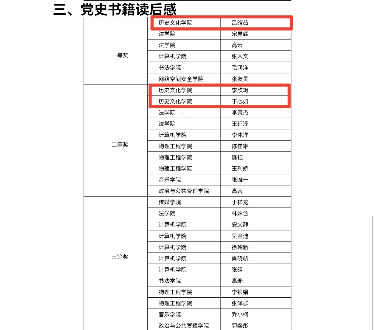 在本次活动中,工口动漫 被评为优秀组织单位。其中,在“红色影片观后感”模块,工口动漫 汤婧玥、许凯迪同学荣获二等奖,李茜、田育鑫、徐银雪同学荣获三等奖;在“党史书籍读后感”模块,工口动漫 吕晗茹同学荣获一等奖,李欣玥、于心如同学荣获二等奖。
