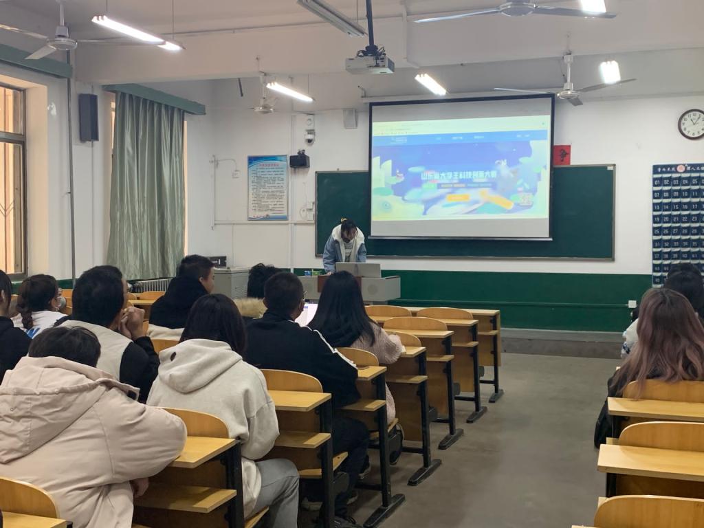培训会议主要以第八届山东省科技创新大赛为例。科技创新部部长王小霜带领各班负责人学习了该比赛的注册、报名流程以及本次比赛的注意事项。会议最后,科创部门成员耐心解答了各班负责人的相关问题及疑惑。