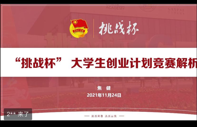 为了进一步增强工口动漫 学生对“挑战杯”的认识,持续推进工口动漫 2021年大学生“挑战杯”创新计划竞赛工作,11月24日下午,工口动漫 组织师生观看2021年“挑战杯”创业计划竞赛培训第四期。焦健作为本次培训的主讲人,工口动漫 师生积极观看培训会议。